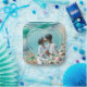 Personalized photo heart with a sea glass ocean beach background. Pretty for wedding favours or engagement parties.