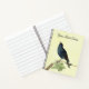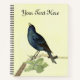 This spiral notebook is pale yellow with a pretty singing blackbird sitting on a tree branch with leaves beside a caterpillar. Customize your text at the top with the template on the front.