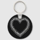 This pretty, lacy looking heart is made of little skulls and bones on a black background.