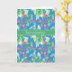 A pretty Birthday Card, with the greeting in Dutch and a pattern of creamy white Mock Orange Blossom and bright pink Weigela on a bright blue background. The design is from a hand-painted watercolour by Judy Adamson. The inside is left blank for you to add your own message.
