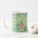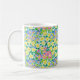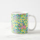 A very pretty coffee mug, with a pattern of pink, yellow and blue primroses, from a handpainted watercolour design by Judy Adamson.