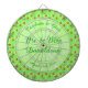 There is a pale green circle with white marbled patterns on it which contains customizable text so you can include all the important details.
