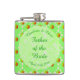 This awesome hip flask is for the Father of the Bride. The design features a pattern of pretty pale pink apple blossom flowers. They are 2 different shades of pink and all have a yellow middle. They are ideal for a Spring Wedding and are mixed amongst apples. Each apple is green with a red blush on one side and a small brown stalk.