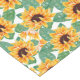 A table runner with a cute summery pattern. Pretty yellow sunflowers surrounded by green leaves in a repeating pattern.