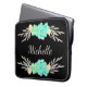 Laptop sleeve featuring a custom monogram and teal and silver flowers