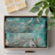A magical white unicorn on a teal watercolor background with cream flowers fantasy AI generated art perfect for your Decoupage projects