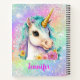 This magical notebook features a lovely Unicorn with an aqua mane and golden horn against a rainbow background. Designed in purples, lavenders, and pinks with glittery sparkles and personalized with your name. Makes a great gift for girls of all ages!