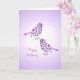 A very pretty Happy Birthday card with a vintage inspired illustration of elegantly patterned purple and white birds and flowers..