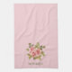 Personalized kitchen towel features vintage illustration of pretty pink roses, with elegant customizable text on pastel pink background.