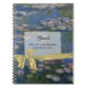 Lovely spiral notebook with Claude Monet's painting Water Lilies as the background. Graphics of a gold tone edged text field and lovely graphics of a golden yellow satin looking ribbon finishes off the colourful guest book. Black text is ready to personalize for your wedding. Matching wedding products available, see links below.