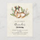 Birthday postcard invitation with a pretty deer laying down surrounded by leafy flora. Rustic Boho style design.