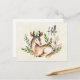 Postcard with a pretty deer laying down surrounded by leafy flora. Rustic Boho style design.