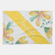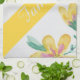 Yellow tea towel with a watercolor design - colours: yellow, pink, light grey. Personalize for a special gift.