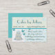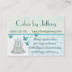Elegant bakery business card done in tan, white, and teal, with a sweet icon of a wedding cake and pretty butterflies. Perfect for a bakery shop, party shop, or an independent custom baker. Customize the text fields to personalize for yourself or your shop.