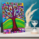 Colourful whimsical artwork. Tree in yellow, white, blue and purple flowers and leaves. AI generated art. genertativecontent