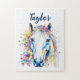 Pretty White Horse Floral Personalized Jigsaw Puzzle