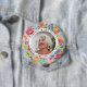 Celebrate a loved family member or friend with this round photograph button featuring a whimsical and bright painterly wild flower pattern on soft shell pink with easily edited text to memorialize a very special person or moment in life.