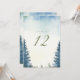 Pretty winter green pine trees table number