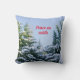 Decorate home, office, ski lodge, or anywhere people gather during Christmas and other winter holidays with this comfy throw pillow. Save and use it year after year for the winter holiday season. The beauty and silence of snow on evergreen trees is accented with pretty red script invoking the holiday spirit. You can change the "Peace on earth" wording to your own if you wish, whether that be "Shalom" or "Merry Christmas" or "Happy Winter" or "It's ski season!"