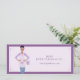Modern and professional cleaning services gift certificate featuring a beautiful smiling and friendly Hispanic woman with her hands on her hip with a bucket of soapy water and bubbles. The lady is wearing a cute violet-purple stripe apron with a lavender shirt and denim jeans. The design includes a two-tone purple frame with sparkling details. Customize with your business name, website, and monogram placed on the apron pocket. The reverse side features the gift certificate information along with contact info, social handles, and icons. Perfect for gifting cleaning services to your clients. All illustrations are hand-drawn original artwork by Moodthology Papery.