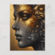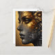 A postcard to keep in touch with a friend or family member. Ai art depicting a beautiful woman with gold flowers in her hair and a mystical look.