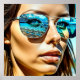 Cool ai art depicting an beautiful woman with the reflection of the beach in her sunglasses.