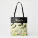 Pretty Yellow Heels for the fashionable woman, this tote bag design features your name at the top in yellow font on a black background. The bottom part of the design features yellow high heels. Makes the perfect gift for a special woman, personalize yours today!