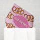 A pretzels in love motif of the distinctive overlapped salted twists of dough. The bread knots appear on a pale pink background with coordinating text area in rose pink. Add your greeting or name once and it will repeat in the framed areas on the whole sheet. Romantic and sweet, this is lovely for a couple tying the knot or a nibbles and drinks event in honour of a new baby, little girl or young lady.