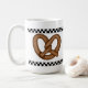 Profitez de votre boisson chaude préférée et d'un en-cas visuel en utilisant cette Mug Pretzel qui sème la lèvre. Pretzel est une illustration originale créée par Debi Payne Designs. Ce bretzel brun grillé à la forme torsadée classique rappelle le parfum délicieux d'un bretzel chaud fraîchement cuit, accentué par les grandes grains de cristal de sel. Le bretzel est entouré d'une bordure de damier noir et blanc classique. Personnalisez n'importe quel produit Pretzel en ajoutant votre nom ou tout texte que vous choisissez. Recueillir tous les fruits et légumes dans la collection de cuisine Debi Payne Designs.