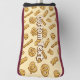 Pretzels and other baked savory snacks. Seamless pattern. Custom background colour. Custom text.