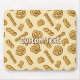 Pretzels and other baked savory snacks. Seamless pattern. Custom background colour. Custom text.