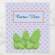 This wine label has a background of light blue with coral rose polka dots. There is a cartoon style drawing of a prickly pear cactus. The light blue rectangle has the text "Cactus Wine" you can change the text to anything you like.