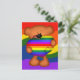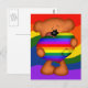 Cute postcard of a little teddy bear holding a giant rainbow pride heart