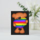Cute postcard of a little teddy bear holding a giant rainbow pride heart