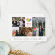 Charming photo collage wedding thank you card featuring four photos, a watercolor pride heart, your initials, and wedding date. Thank you so much for celebrating with us! is written in a gorgeous calligraphy script at the bottom. The back is lined so you can write a personal message by hand.