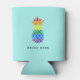 Gear up for pride month with these vibrant aqua can coolers featuring a tropical pineapple illustration in the rainbow pride flag colours. Customize with your choice of custom text beneath.