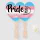 A set of colourful hand fans with the Trans Flag on the front and back.