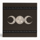 Old fashioned inspired moon design in soft shades of whites, greys, brown and black. Features original art and design by ~M. Watkins c. 2014. Font style/size/colour on back can be altered through the customize button. Change background to favourite colour through colour picker.
