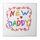 New Daddy keepsakes, mugs, mousepads, keychains, hoodies, cards, and more for the proud new dad of a baby daughter or son, features bright multicolors text design, can be personalized on the spot with a name or other text!