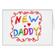 New Daddy T-shirts, mugs, mousepads, keychains, hoodies, cards, and more for the proud new dad of a baby daughter or son, features bright multicolors text design, can be personalized on the spot with a name or other text!