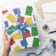 This fun and colourful wrapping paper is perfect for wrapping up a construction kit gift for your favourite young builder. It features a pattern of toy building bricks in red, blue, yellow and green against a white background.