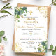 Invite loved ones to celebrate your child’s First Communion with this invitation, featuring green leaves and golden flowers. Perfect for both boys and girls, it’s an ideal choice for a Catholic Holy Communion.