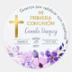 Celebra la ocasión de la Primera Comunión con este elegante sticker. Adornado con flores moradas y una cruz dorada, este sticker religioso es perfecto para regalos y recuerdos católicos.