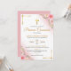 Celebra la Primera Comunion de tu bebita con esta invitacion de cruz y flores rosadas.
