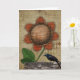 Primitive greeting card with sunflower and bird. It also has an Americana feel to this card.