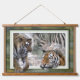 Stunning wildlife art of two Siberian tigers overlaying a zebra and giraffe. Create a safari themed room that will wow your guests.
