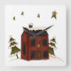 Primitive style clock with barn red saltbox colonial. Snow graces the roof and the tops of the trees. Be sure to check the rest of the products available with this design for a true primitive and country look to your kitchen!