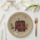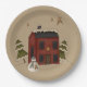 Primitive Red Colonial With Snowman Paper Plate