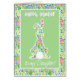 A pretty Easter Greeting Card for a Daughter, with a cute Bunny Rabbit on a pale green background and a border of coloured primroses. Please feel free to personalise the inside message.