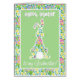 Une jolie carte de voeux de Pâques pour une Mère-Godmère, avec un lapin mignon sur un arrière - plan vert pâle et une bordure de primroses colorées. N'hésitez pas à personnaliser le message intérieur.